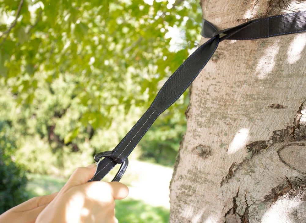 - Each strap is 9 ft. long, allowing you to wrap it around big trees; straps can also be attached to roof rack, rocks or whatever else you can find