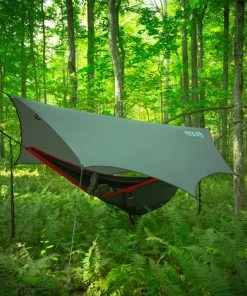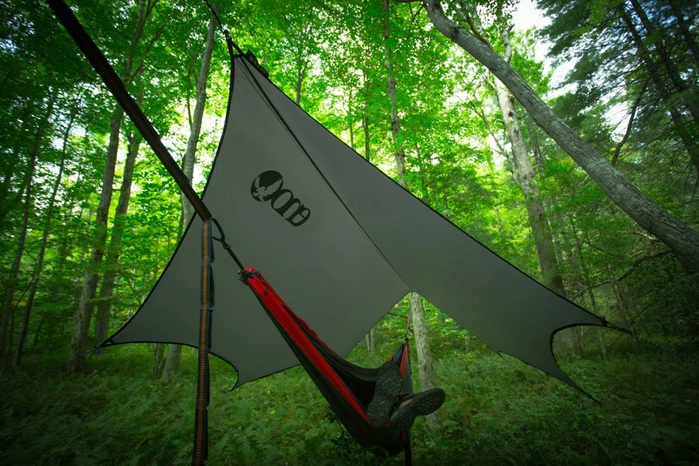 Rest easy in your hammock and enjoy the soothing sound of the rain with the ENO DryFly rain tarp.