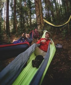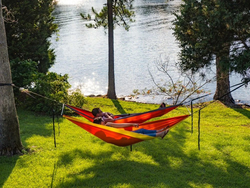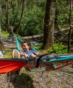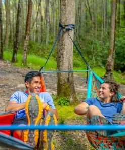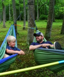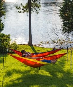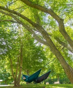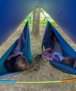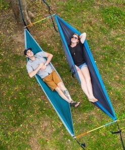 - Tandem hammock system lets you hang 2 hammocks from 2 trees or anchor points