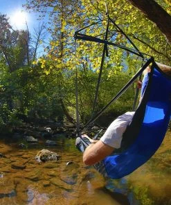 - Hang the chair from a tree branch or other sturdy object and then adjust the position of the footrest and the angle of recline on the chair to make yourself comfortable