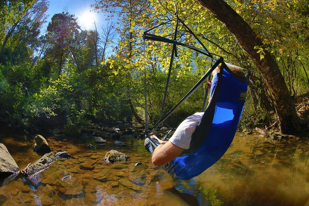 Kick back in the comfortable ENO Lounger™ hanging chair and you’ll wonder why you’ve been spending so much time on your feet.