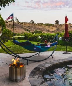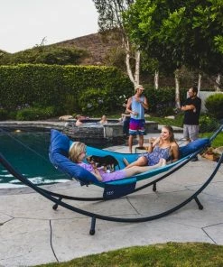 Perfect for enjoying the breeze on hot days, the ENO SuperNest SL backyard hammock keeps you cool and comfy with an exceptionally breathable mesh body, plush pillows and 3D-contoured construction.