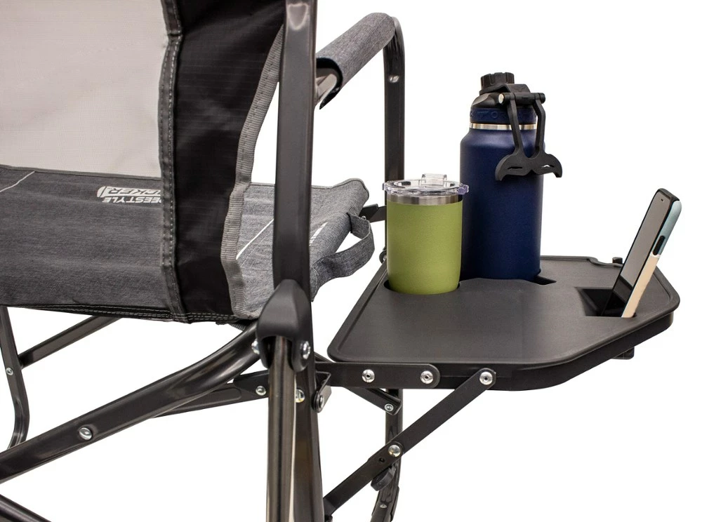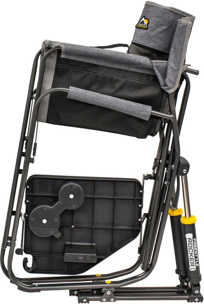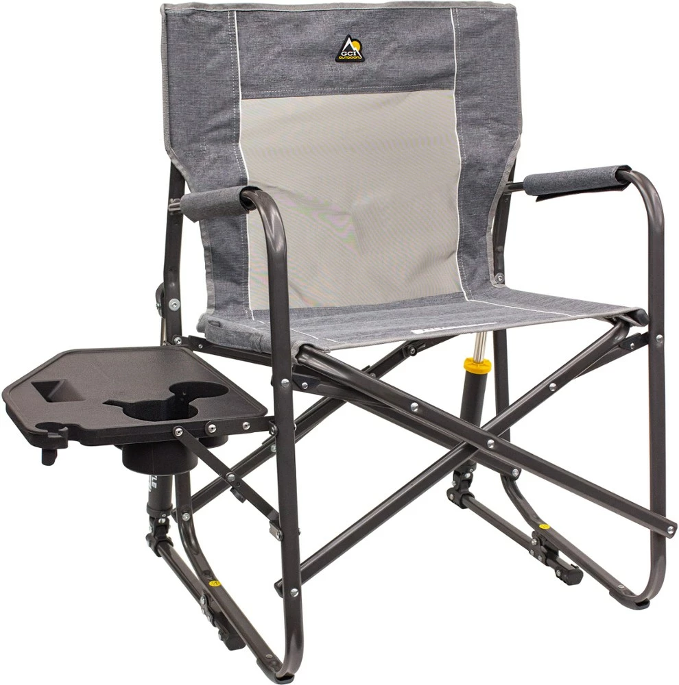 Bring the comfort of the indoors outside with the GCI Outdoor Freestyle Rocker chair with side table. It rocks smoothly on flat, hard or soft terrain while the side table holds your drink and phone.