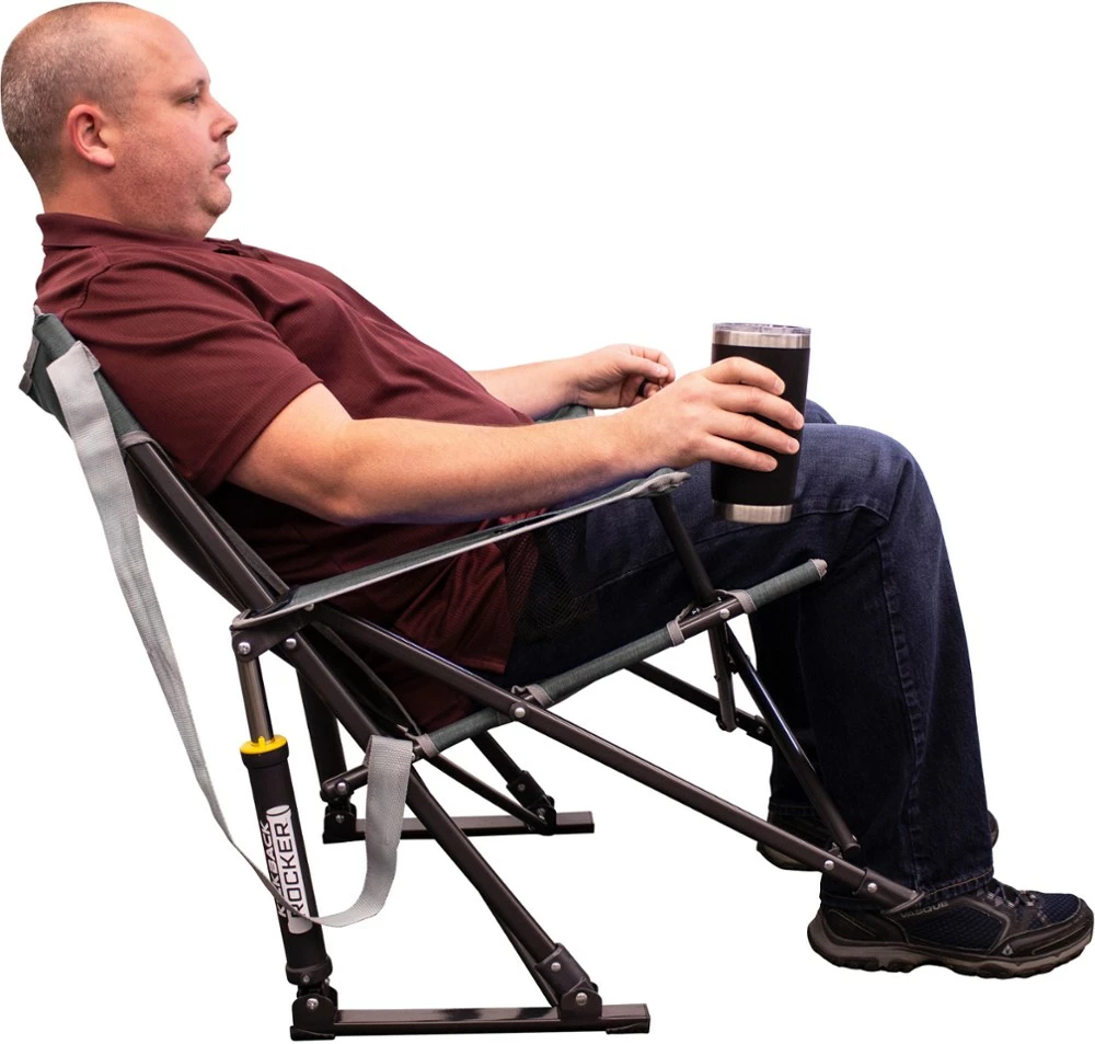 Supplying copious comfort for its midsize stature, the light and compact GCI Outdoor Kickback Rocker chair sits slightly lower than standard chairs, but higher than low-to-the-ground designs.