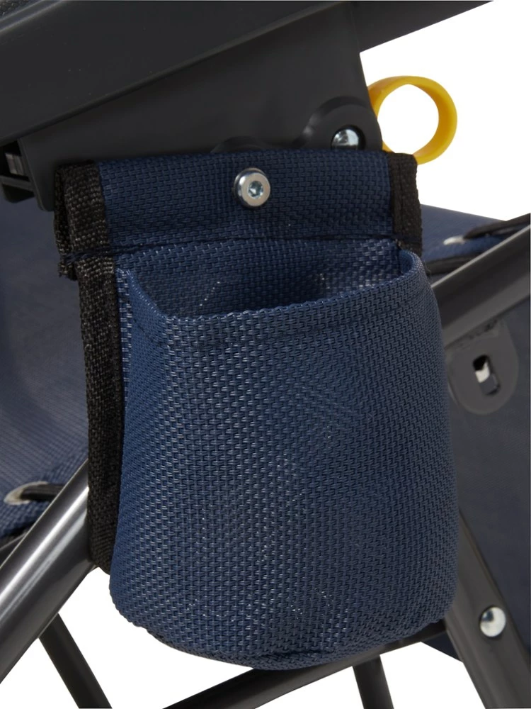 - Powder-coated steel frame reclines for maximum comfort; position lock keeps you reclined or upright