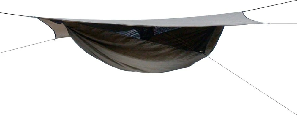 This comfortable, asymmetric hammock has a side entry, double-slider zipper and large, protective rainfly that make it perfect for tall hikers who like to travel light.