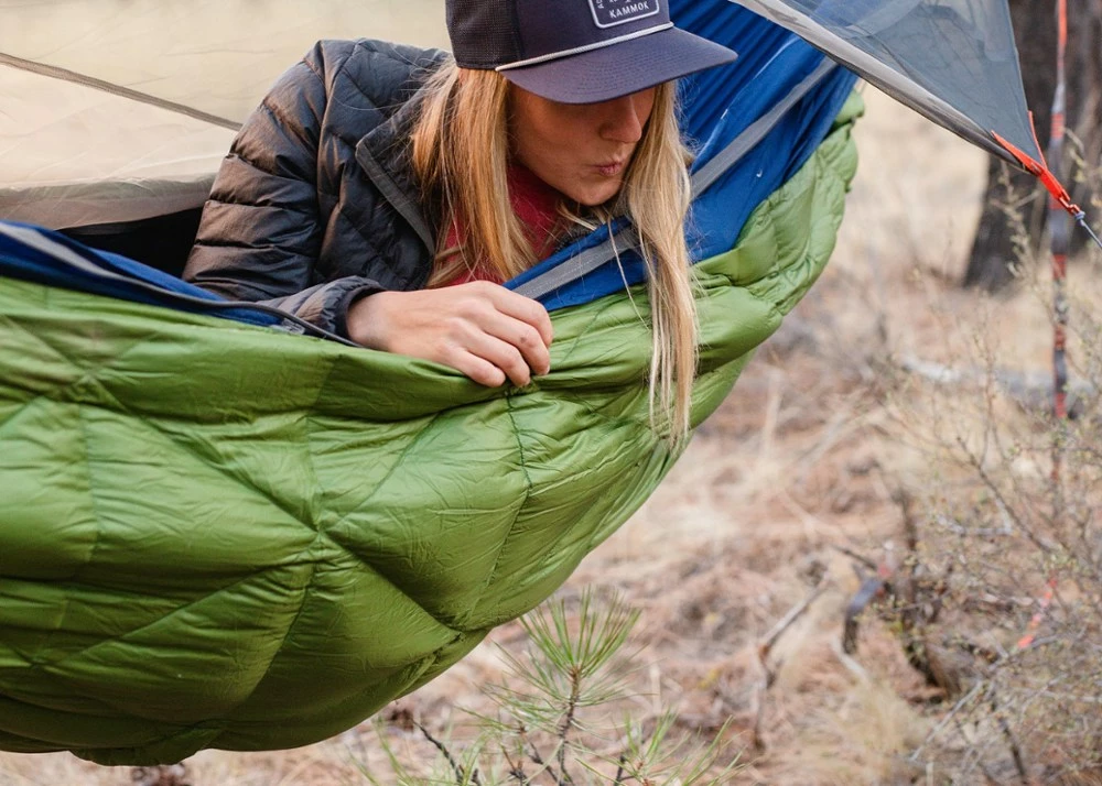 With a poncho opening for hands-free, wearable warmth, the Kammok Bobcat 45°F Down Trail quilt adapts to your adventure, serving as a backpacking sleeping bag, hammock underquilt or cozy camp blanket.
