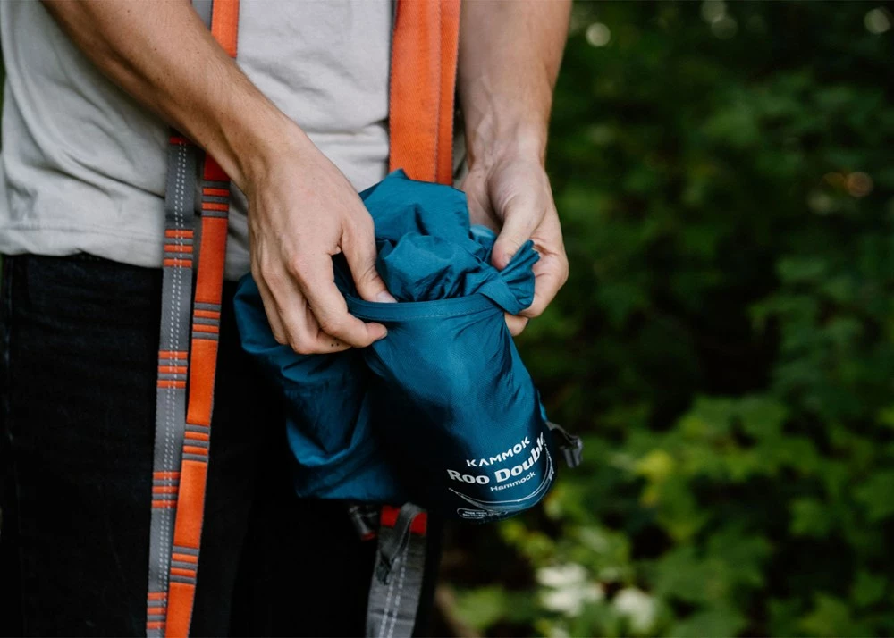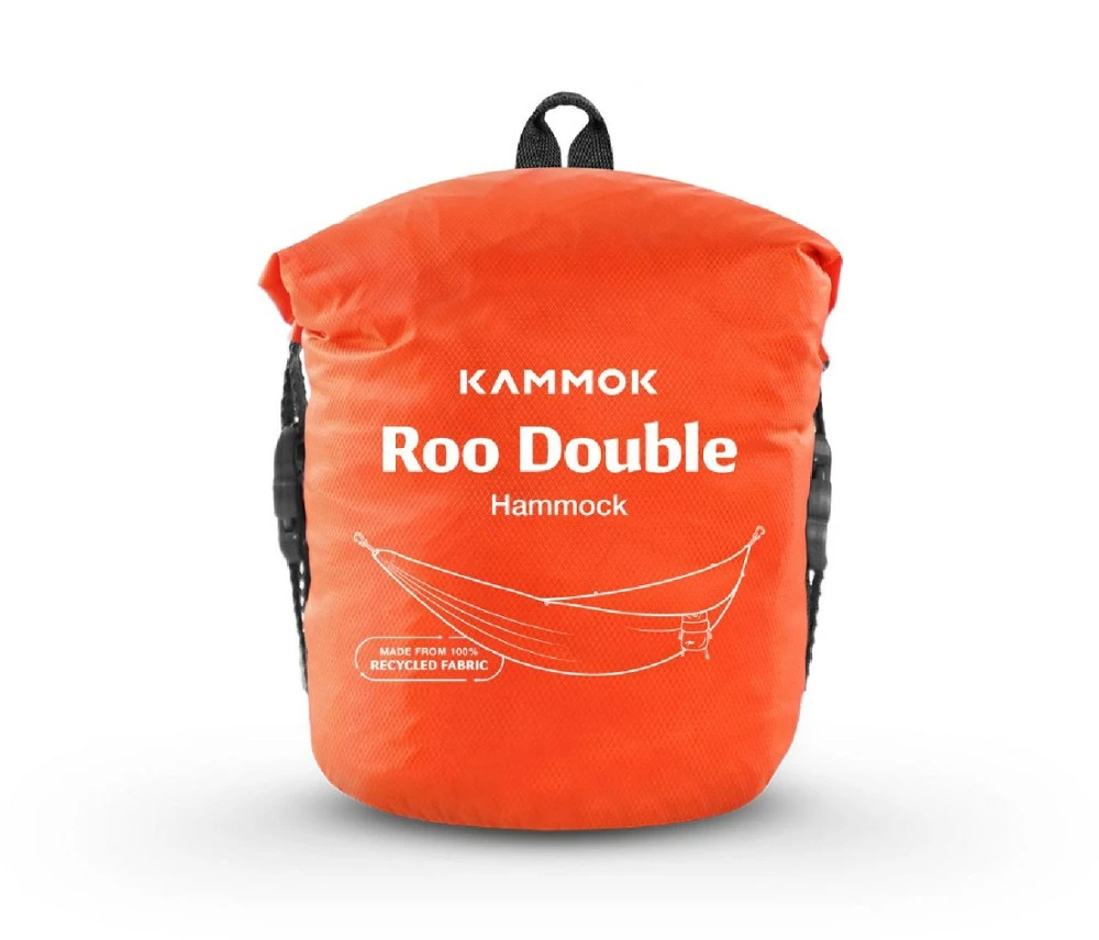 - Kammok reduced the use of virgin nylon while maintaining the same durability and performance needed in the backcountry—the Roo Double Recycled safely holds up to 500 lbs.