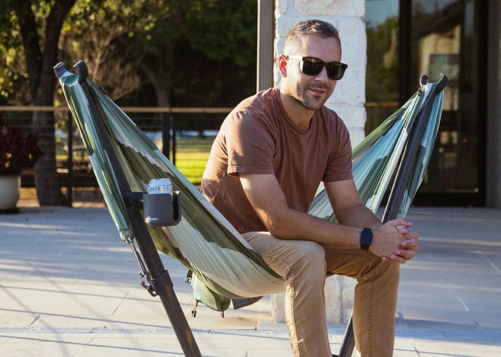 Keep your drink within reach while you settle into a paperback. The perfect add-on to Swiftlet portable hammock stands (not included), this Kammok cup holder easily fastens to either arm.