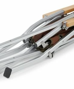 - Rugged canvas fabric is accented with bamboo wood armrests and an aluminum frame